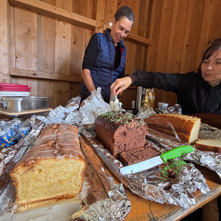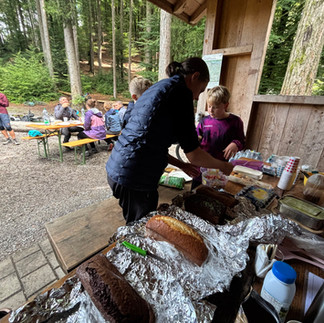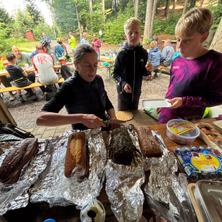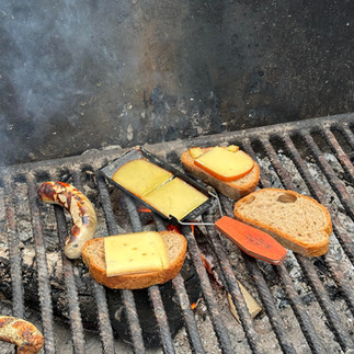 Zur Mittagspause versammelten sich alle an der idyllischen Grillstelle. Auf dem Feuer brutzelten Würste, Raclette wurde in Pfännchen geschmolzen, und ein üppiges Buffet mit mitgebrachten Leckereien wartete auf hungrige Bikerinnen und Biker. Ein besonderes Highlight war das Dessertbuffet, das kaum Wünsche offenliess – alles dabei!