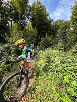 Dort ging es in verschiedenen Gruppen weiter – je nach Können und Lust auf Abenteuer. Die Trails boten für alle etwas: von flowig bis technisch, und durch den Regen der Vortage war es stellenweise matschig und rutschig – genau das richtige Terrain für Mountainbike-Fans!